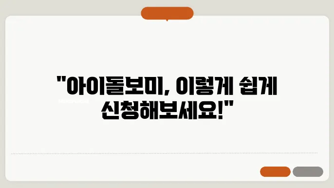 아이돌보미 신청은 다음의 절차를 통해 진행할 수 있습니다. 첫째, 자녀를 양육하는 보호자는 가까운 지역의 아이돌봄서비스 센터를 방문하거나 해당 센터의 웹사이트를 통해 온라인으로 신청할 수 있습니다. 둘째, 신청서 작성 후 필요한 서류를 제출해야 하며, 서류 목록은 각 센터의 안내에 따라 다를 수 있습니다. 셋째, 신청이 접수되면 센터에서 확인 후 아이돌보미를 배정해 드립니다.