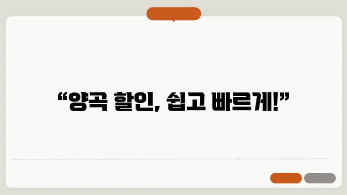 | {양곡할인 신청방법} | {각 지자체에서 제공하는 할인 제도} | {할인율 약 20%~30%} | {온라인 및 오프라인 신청 가능, 신청서 제출 필수} |