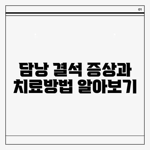 담낭 결석은 많은 사람들이 겪는 소화계 질환입니다. 이 질환은 담즙이 가라앉아 결석이 형성되는 현상을 말하며, 증상과 치료방법이 다양하여 주의가 필요합니다. 담낭 결석의 증상은 때때로 미세하게 나타날 수 있으며, 이는 무시되기 쉬운 문제입니다. 하지만 쉽게 넘어갈 수 있는 증상은 심각한 건강 문제의 신호일 수 있으므로, 적절한 치료와 관리가 필요합니다. 따라서 담낭 결석의 증상 및 치료 방법을 정확히 이해하고, 이를 통해 조기에 대처하는 것이 중요합니다. 💡 숨은 내 환급금 조회 및 신청 꿀팁 바로 확인하기! 💡 👉 숨은 내 환급금 조회 및 신청 꿀팁  담낭 결석의 정의와 원인담낭은 간에서 생성된 담즙을 저장하는 역할을 하며, 담낭 결석은 이 담즙이 고형화되어 결석 형태로 변하는 과정을 의미합니다...